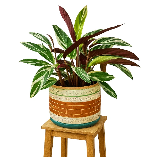 Calatea Hoja de Indio es una planta de interior tropical con hojas grandes, decorativas y llenas de dibujos, ideal para dar un toque exótico y elegante a tus espacios.