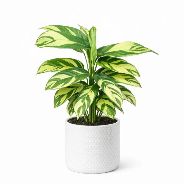 La Calathea Lubersiana (también conocida como Ctenanthe Lubbersiana) es una planta tropical impresionante con hojas grandes y alargadas que tienen un patrón verde oscuro con venas plateadas o amarillentas, como si estuvieran pintadas con cuidado. Su diseño natural la hace perfecta para crear un punto focal elegante en salas, oficinas o esquinas con luz suave, donde aporta movimiento y un toque sofisticado sin necesidad de flores llamativas. Es de esas plantas que parecen arte vivo, ideales para quienes quieren un interior verde pero refinado.