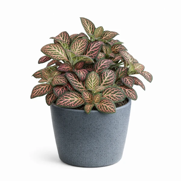 La Fitonia es una plantita diminuta pero con un impacto enorme gracias a sus hojas menudas y coloridas, con venas que parecen pintadas en rosa, blanco o plateado sobre un fondo verde intenso – perfecta para terrarios, macetas pequeñas o crear un "tapiz vivo" en repisas iluminadas. Es ideal si quieres algo delicado pero lleno de personalidad que llene rincones de frescura tropical sin ocupar espacio, y su tamaño compacto la hace súper versátil para decorar baños, cocinas o escritorios.