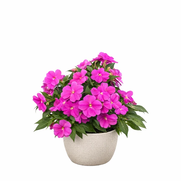 Es fácil de cuidar y muy productiva: despunta tallos para ramificarla más y multiplica por esquejes en primavera. Tolera macetas medianas donde las raíces algo apretadas fomentan más flores, y atrae polinizadores al exterior. Si buscas color fácil y duradero para tus espacios, la Guinea te llenará de flores sin complicaciones.