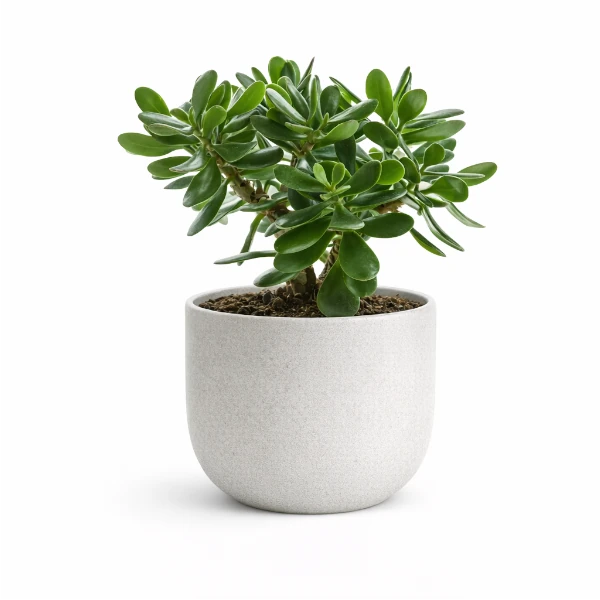 La planta de jade es una suculenta clásica y resistente con hojas gruesas y brillantes como monedas verdes, que almacenan agua y le dan ese aspecto arbóreo compacto ideal para mesas, repisas o como "árbol de la suerte" en feng shui para atraer prosperidad. Crece lenta pero constante, formando troncos leñosos con el tiempo, perfecta para hogares bogotanos donde quieres verde duradero sin dramas de mantenimiento. Su simplicidad la hace regalo ideal para novatos o quienes olvidan regar.