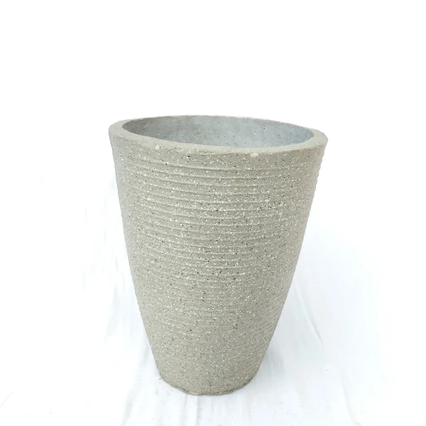 Diseño cónico = estabilidad + drama máximo. Base ancha 30cm sujeta plantas pesadas sin tambalearse, mientras la forma afilada alarga visualmente el espacio. Cemento texturizado resiste lluvia bogotana torrencial y sol sin pestañear. Drenaje natural perfecto para raíces tropicales felices. Industrial rústico que eleva cualquier exterior.